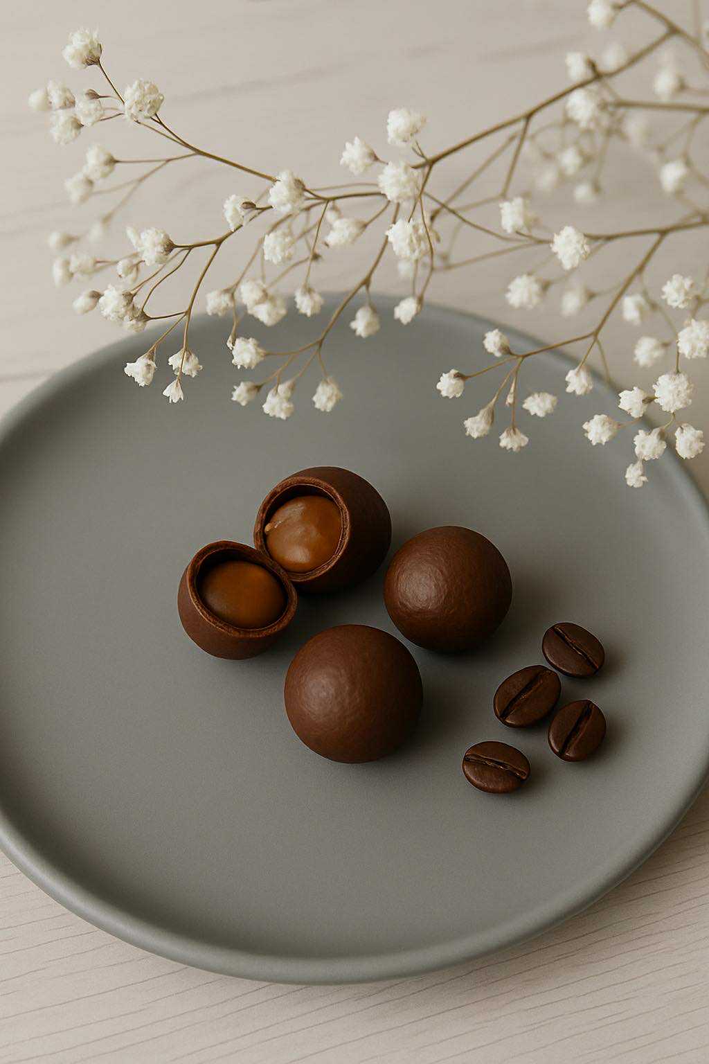 | Ingredienser: Søtstoff: erytritol og stevioglykosider, kakaosmør, kakaomasse, kaffe, kostfiber: inulin, emulgator: solsikkelecitin, sukker, salt, vanilje.