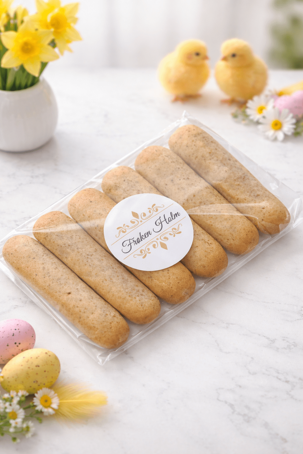 6-pk kransekakestenger uten sjokolade. Vi har også med sjokolade.