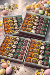 Ingredienser: Kakaosmør, fløte, søtstoff: erytritol og stevia, kakaomasse, hasselnøtter, melk, emulgator: solsikkelecitin, sitron, bringebær, solbær, appelsin, vanilje, salt.