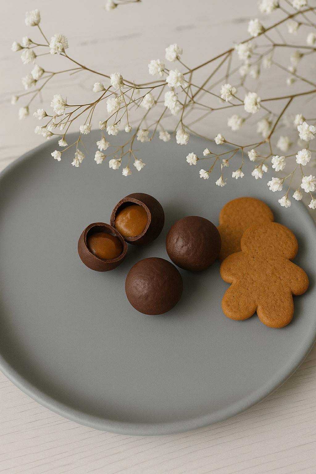 | Ingredienser: Søtstoff: erytritol og stevioglykosider, kakaosmør, kakaomasse, kanel, kardemomme, salt,