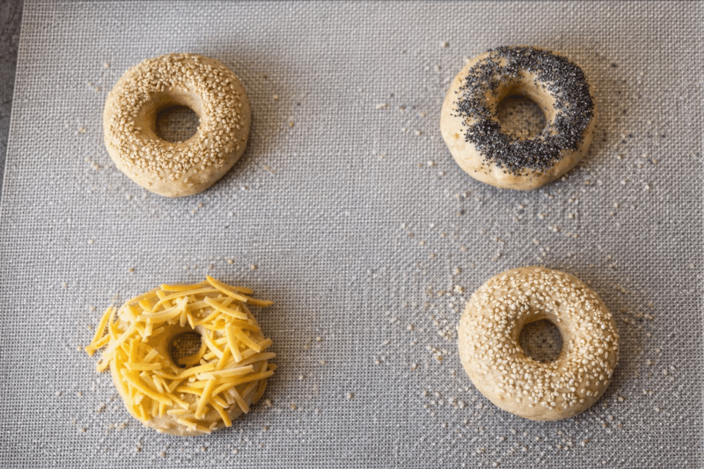Pensle bagelsene med egg og strø gjerne over litt sesam- eller valmuefrø.